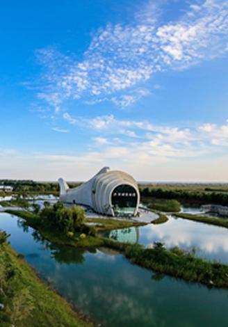 景點位置:搭乘觀光車到洪澤湖濕地魚族館站(大魚型建筑)